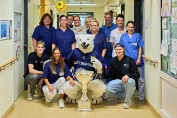 Eisbären Berlin erfreuen kleine Patient*innen im Evangelischen Waldkrankenhaus Spandau